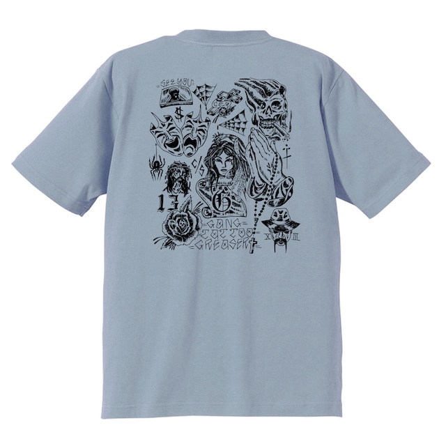 【アイテム】 ■Greaser - G FLASH - T-Shirt 【 GREASER CLASSIC∴ 】コレクション 2010年に愛知県名古屋市のタトゥーアーティストCOOL TATTOOING MASATOに描き下ろしてもらったデザインを復刻リリース。 チカーノギャングスタイルのオールドスクールタトゥーフラッシュです。 アシッドブルーボディにブラックプリントです。 サイズ展開は、サイズS~XXXLまでご用意しています。 ※受注生産商品になります。 【ボディ/素材】 Tシャツ 綿100% 5.6オンス よれない、透けない、長持ちする、 着心地にこだわったボディを使用しています。 【サイジング】 サイズチャート画像、着用モデルを参考にご注文ください。 サイズ展開は、サイズS~XXXLまでご用意しています。 【着用モデル】 @kolorz_maroon _ 身長180cm / 体重110kg _ XXXLサイズ着用 【特典】 こちらの商品をお買い上げの方にGreaserオリジナル非売品ステッカープレゼント。 ※デザインは時期によって様々で選ぶことはできません。 屋外向けで耐水・耐候性に優れたステッカーなので、車やバイクにもOKです。 【注意】 お客様の都合による良品のキャンセル・返品・交換は一切承れません。 画像はイメージのため、実際とは異なる場合があります。 その他イメージ画像も含むため、実際の販売商品とは異なる場合があります。 お使いの環境、モニター、ブラウザ等の違いにより、色の見え方が実際とは異なる場合があります。