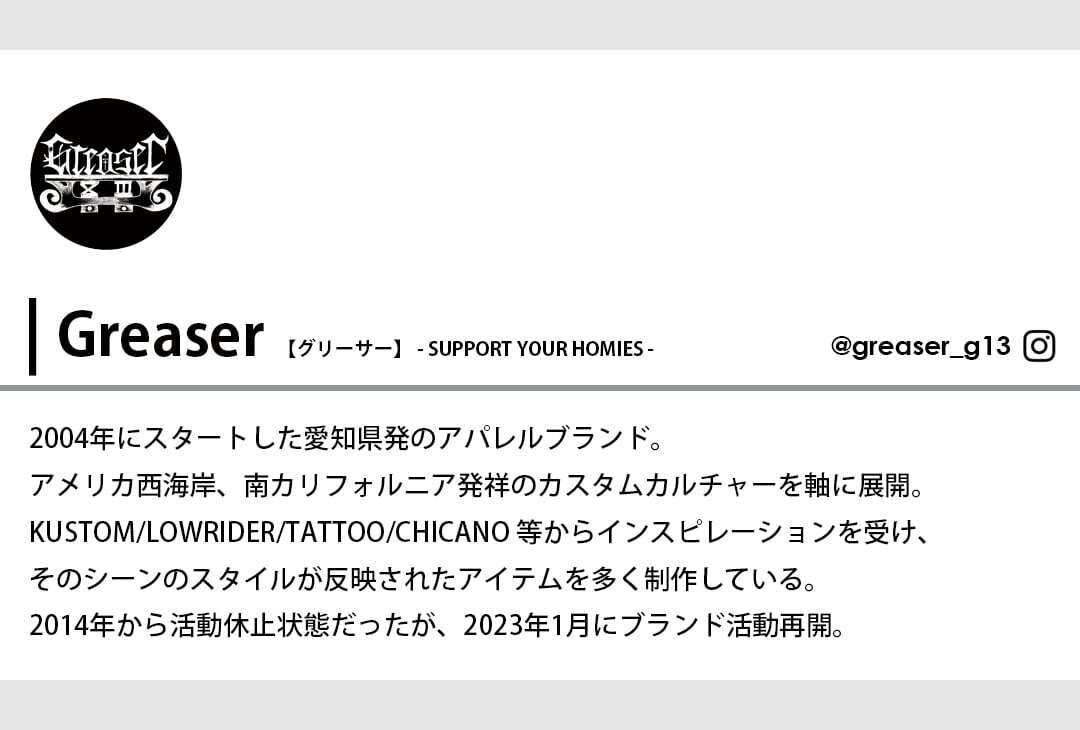 バックのデザインは、Greaserのブランド制作に欠かすことのできないチカーノカルチャーバイブル映画、イーストLAのローライダーシーン描いた「BOULEVARD NIGHTS」をリスペクト&オマージュしてデザインに落とし込みました。